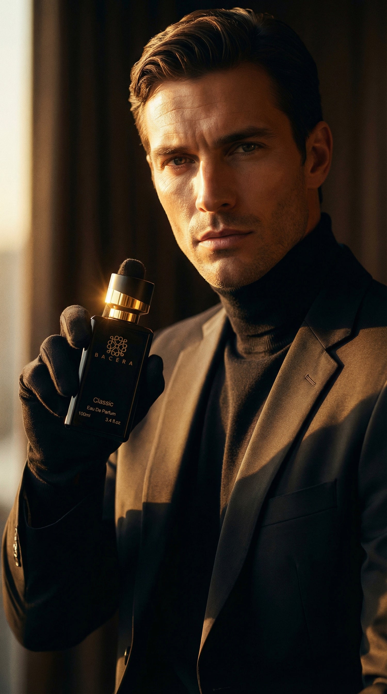Dark amber and smoked woods create a rich evening warmth, while tonka and leather bring sensual depth and masculine elegance.